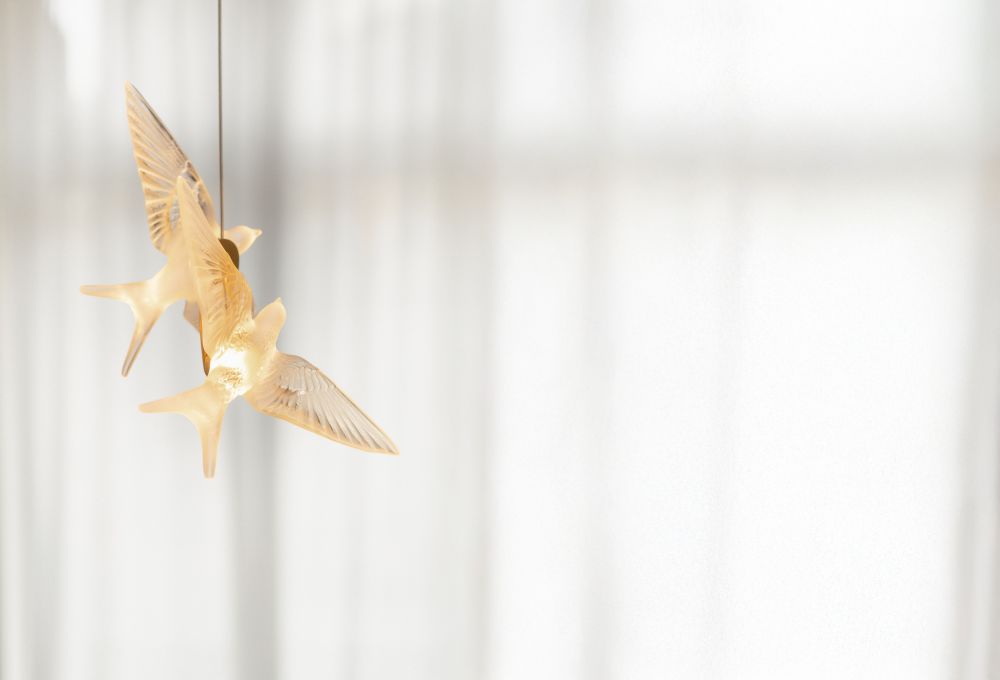The Lalique Suite is a real showcase of refinement, embodying the hotel’s elegance and fine art of living. It is simply sublime, thanks to 23 pieces (lamps, wall lights, mirrors…) from our collections. As for the Apartment, it extends over the 4th and 5th floors, and surprises with a collection of luminous Swallows majestically suspended above its private staircase. This installation recalls an open aviary where light and crystal dance in perfect harmony.
