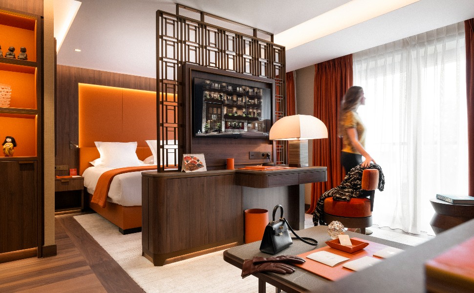 Ce boutique-hôtel s’illustre par sa collaboration avec la Maison Lalique, symbole de l’art de vivre à la française, où pièces emblématiques et créations exclusives se dévoilent dans une mise en scène poétique. Un lustre en cristal suspendu accueille les hôtes dès le seuil, plongeant l’espace dans une atmosphère feutrée et apaisante. Avec ses 14 clés, le Maya Hotel Courchevel 1850 s’apparente à un refuge réconfortant, où tout invite au ressourcement : des chambres et suites aux lignes pures baignées de lumière jusqu’aux deux joyaux des lieux : la Master Suite Lalique et l’Appartement Lalique, ornés de pièces uniques. Tout autour, les matériaux naturels – bois, pierre, bronze et métal – créent un équilibre harmonieux entre sophistication intemporelle et confort contemporain, composant un décor pensé comme une respiration. « On voulait que chaque détail exprime la justesse », confie le directeur de l’établissement.