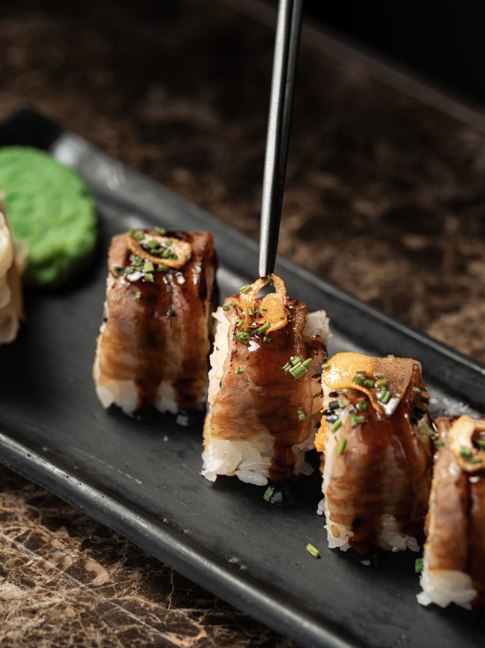 Tout commence par le choix des ingrédients. « Nous travaillons en étroite collaboration avec nos producteurs pour trouver les meilleurs produits », explique le Chef. Ici, tout est préparé sur place, jusqu’au moindre gyoza. Recettes, présentations, techniques, de Monaco à Porto Monténégro, la créativité s’affine, les plats se peaufinent et les idées circulent librement entre les deux cuisines.